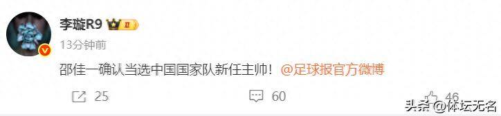 随后,中国足协下午5点官方宣布,邵佳一担任国足主教练,他也是最近6任国足主帅的第3位本土教练,此前两位分别是李铁和李霄鹏!