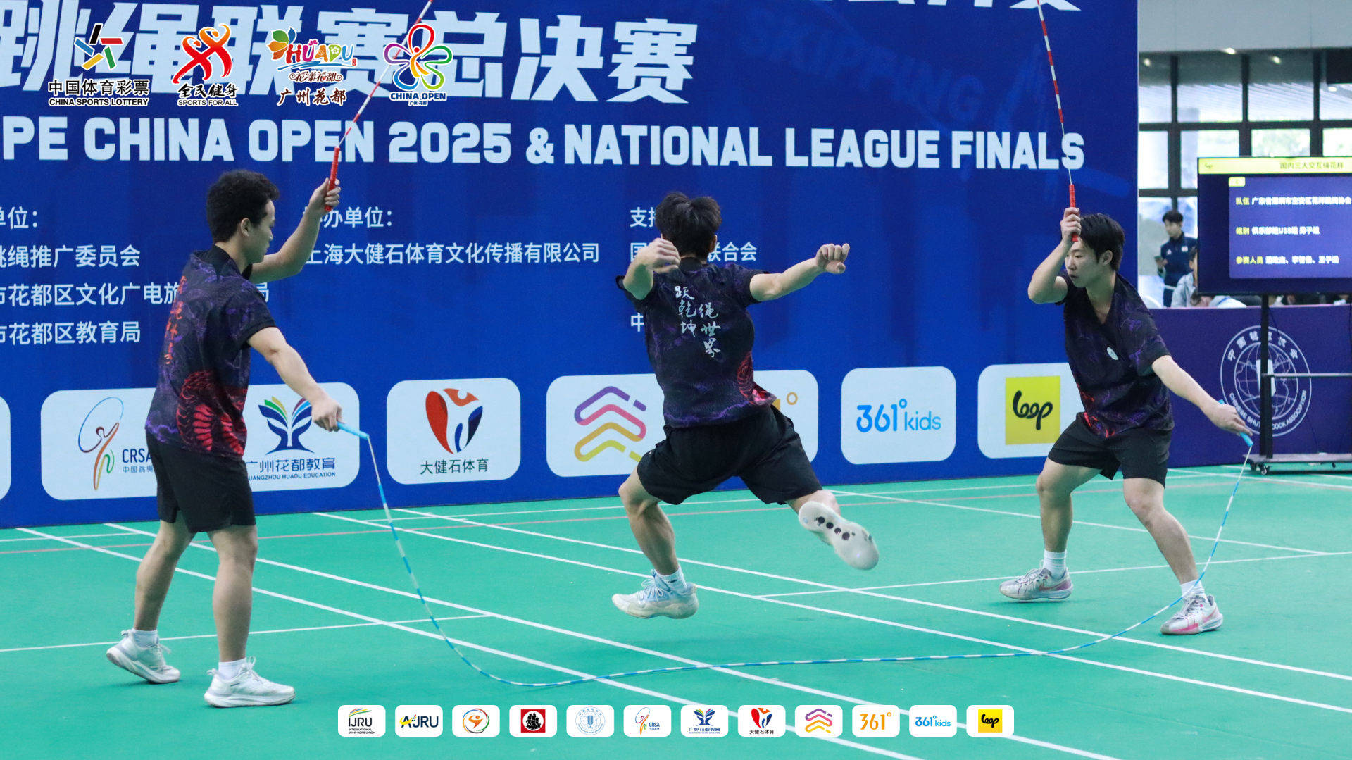 赛事现场竞争白热化,绳影翻飞间尽显少年风采。深圳选手李智燊、王子涵、潘政杰组成的战队,在国内三人交互绳花样U18组比赛中展现超强实力,不仅以50分难度满分的亮眼表现征服评委,更以118.2分的高分力压群雄,将冠军奖杯收入囊中;与此同时,赵柏钧、龙佳音、邓皓宇组成的队伍在U15组赛场同样表现出色,凭借默契的配合与流畅的动作衔接脱颖而出,成功摘得桂冠。两支冠军队伍均顺利拿到国家队竞选资格,谈及未来,小将们眼神坚定、斗志昂扬:“我们的目标是登上亚洲锦标赛、世界锦标赛的领奖台,让世界看到中国少年的跳绳实力!”