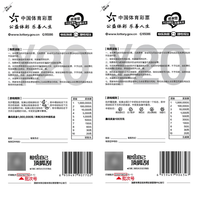 请购买上述印刷批次即开型体育彩票游戏的购彩者在停止兑奖时间前及时兑奖。不属于上述印刷批次的同名即开型体育彩票游戏可继续销售、兑奖。